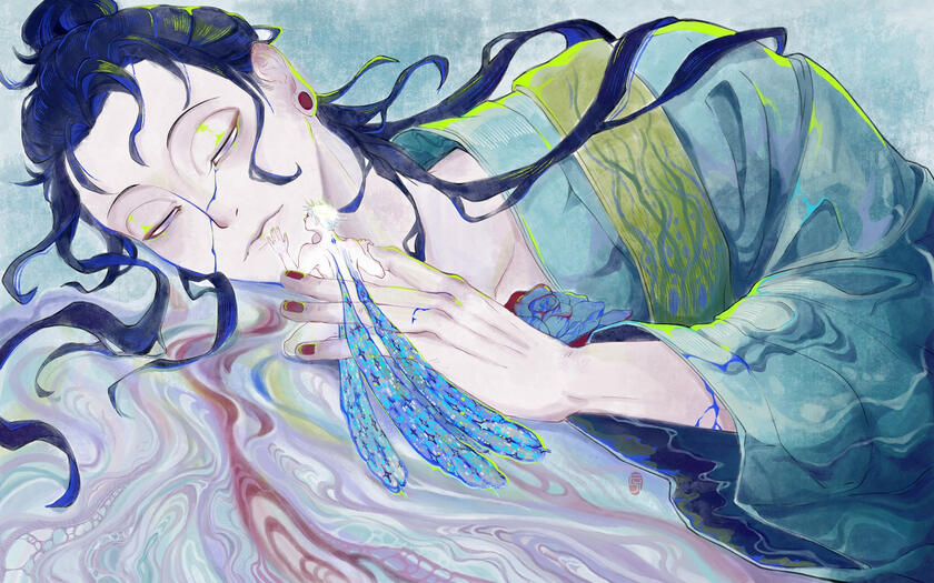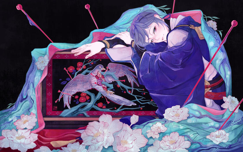 - Thế mạnh của mình là bối cảnh truyền thống Nhật bản và các chủ đề mang yếu tố thần thoại, cổ tích. Mình chủ yếu vẽ nhân vật là nam giới.